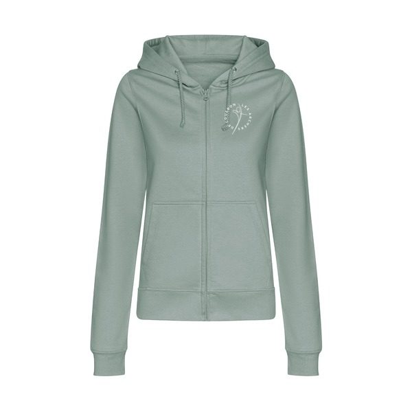 Sweat zippé sur toute la longueur. Coupe décontractée pour femme. Zip principal YKK en plastique recouvert. Ourlet à double surpiqûre. Capuche doublée. Cordons unis Poches kangourou. Une simple étiquette décollable facilite le changement de marque. Intérieur en molleton gratté. Poignets et ourlet côtelés. Une face en coton doux permet de créer une surface d'impression idéale. Certifications WRAP, Sedex et PETA APPROVED VEGAN.